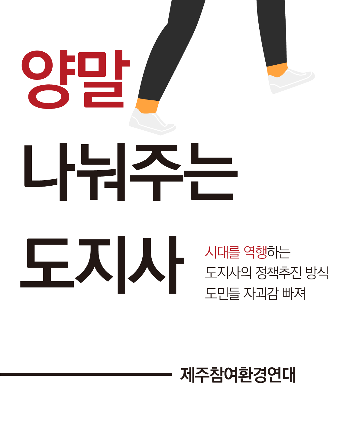 오영훈 도정은 행정체계개편이 제주도민의 참여를 통한 공론화 과정의 산물이라고 말한다. 도지사의 입장에서 공약 사항이고, 기초자치단체의 부활 필요성도 있다. 그러나, 일방적 추진이 정당화되는 것은 아니다. 도지사는 전체 제주도민을 대표하는 자리로 항상 제주도민의 목소리에 귀 기울여야 한다. 자신이 추진하는 공약을 달성하는 것이 최우선이 아니라, 도민의 의견을 경청하고 자신의 정책에 반영되도록 노력하는 것이 도지사로서 갖추어야 할 자세가 아닌가. 공론을 모으는 것은 절차가 아니라 목적이 되어야 한다. 양말을 나누어 줘서라도 절차를 진행하겠다는 것은 오영훈 도지사의 정책 추진 방식이 과거 ‘밀가루 선거’로 대표되는 퇴행과 구태에 머물러 있음을 보여준다.