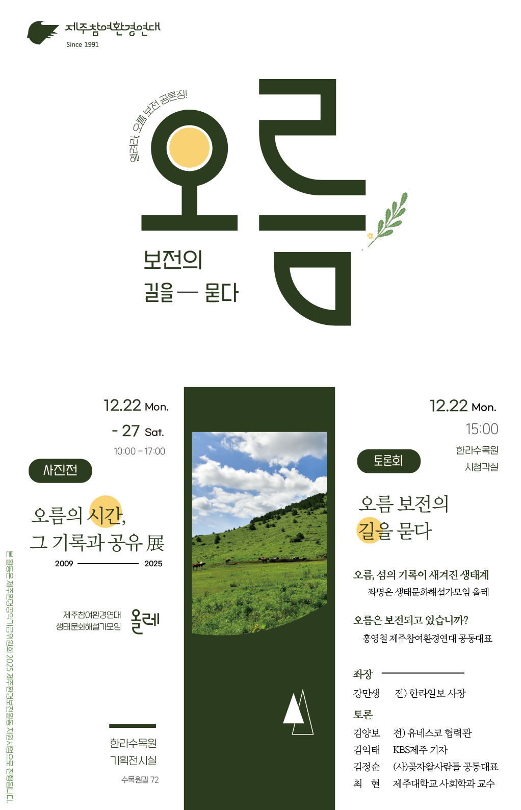 • "열려라, 오름보전 공론장!" 오름 보전을 위한 토론회와 사진전 개최